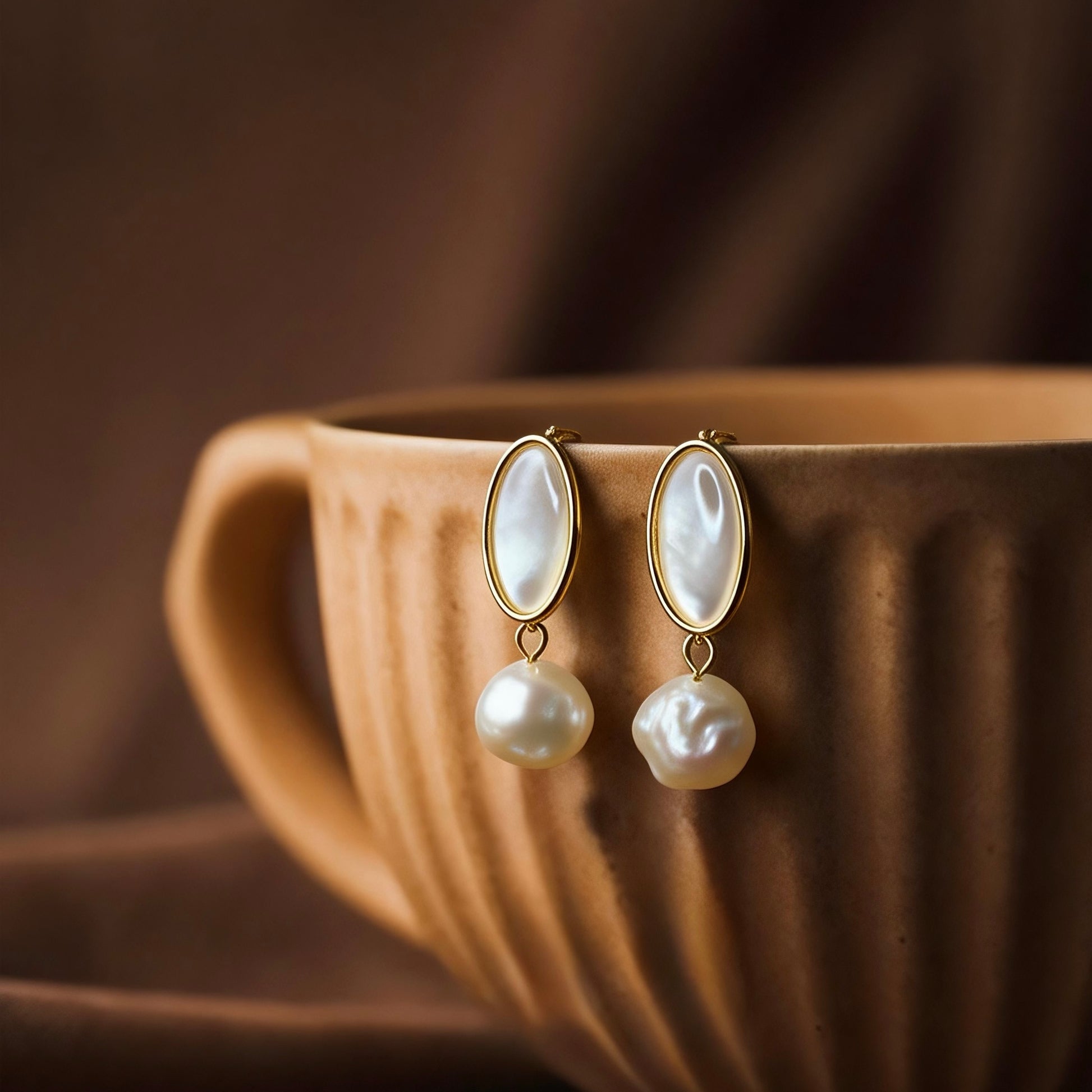 Baroque Pearl & Oval Shell Drop Earrings