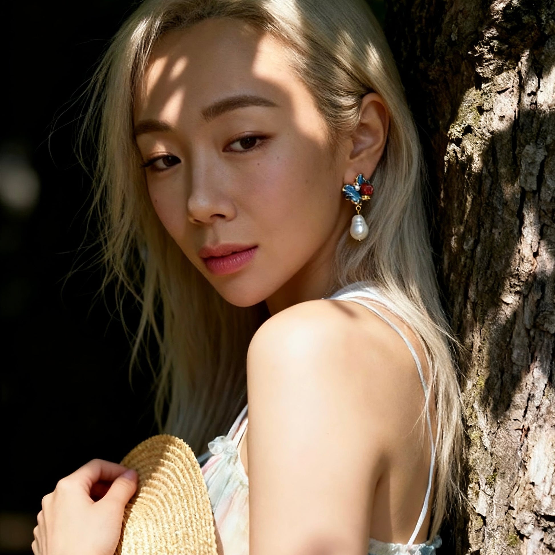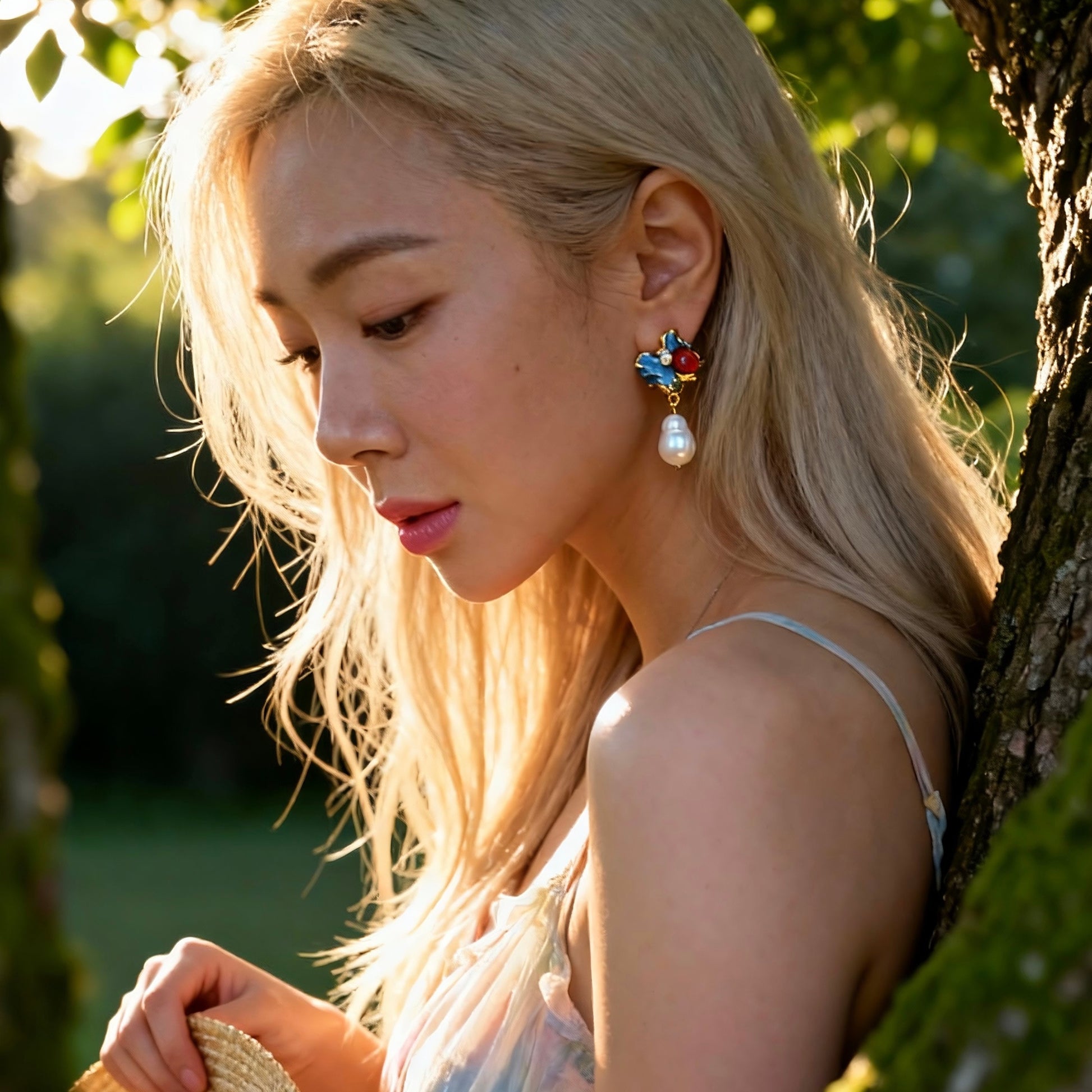 A striking blend of blue enamel petals, a warm red stone accent, and a luminous baroque pearl drop β these earrings add instant artistic elegance to any outfit.