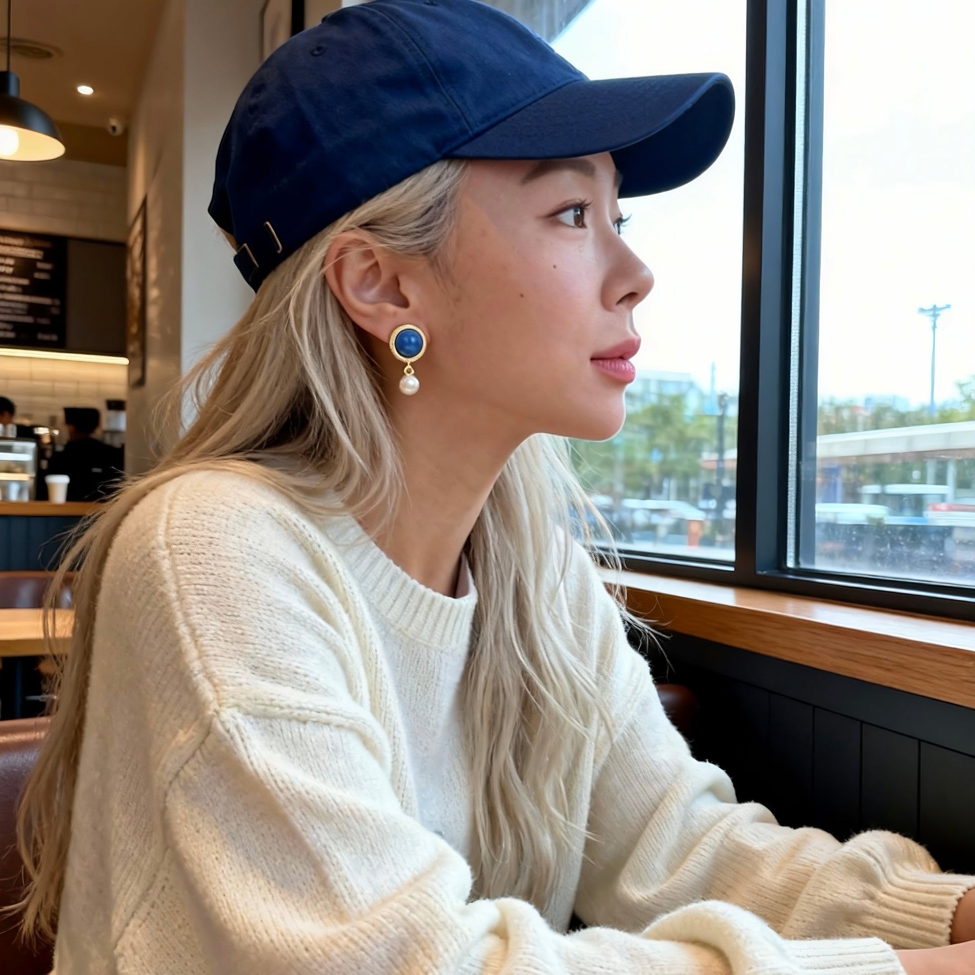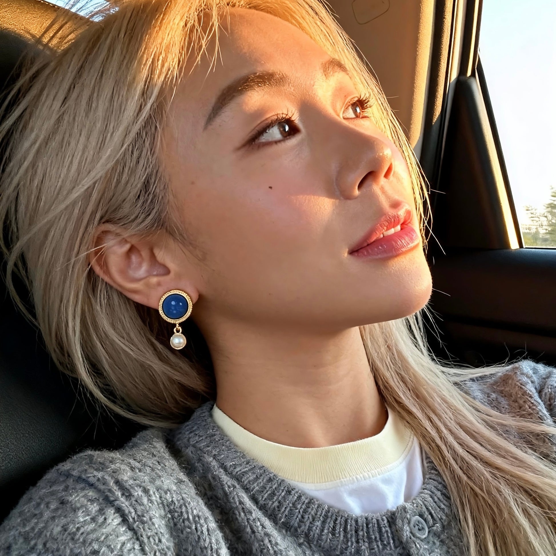 A soft vintage glow in every detail β these earrings pair a serene blue stone with a delicate pearl drop for an effortless coastal elegance.