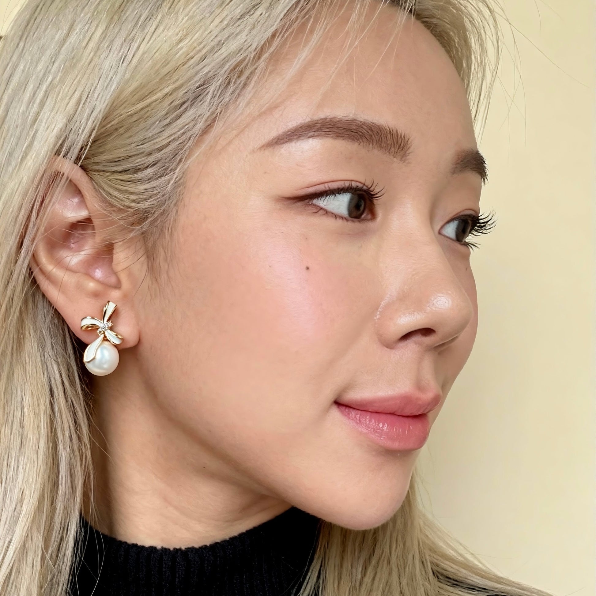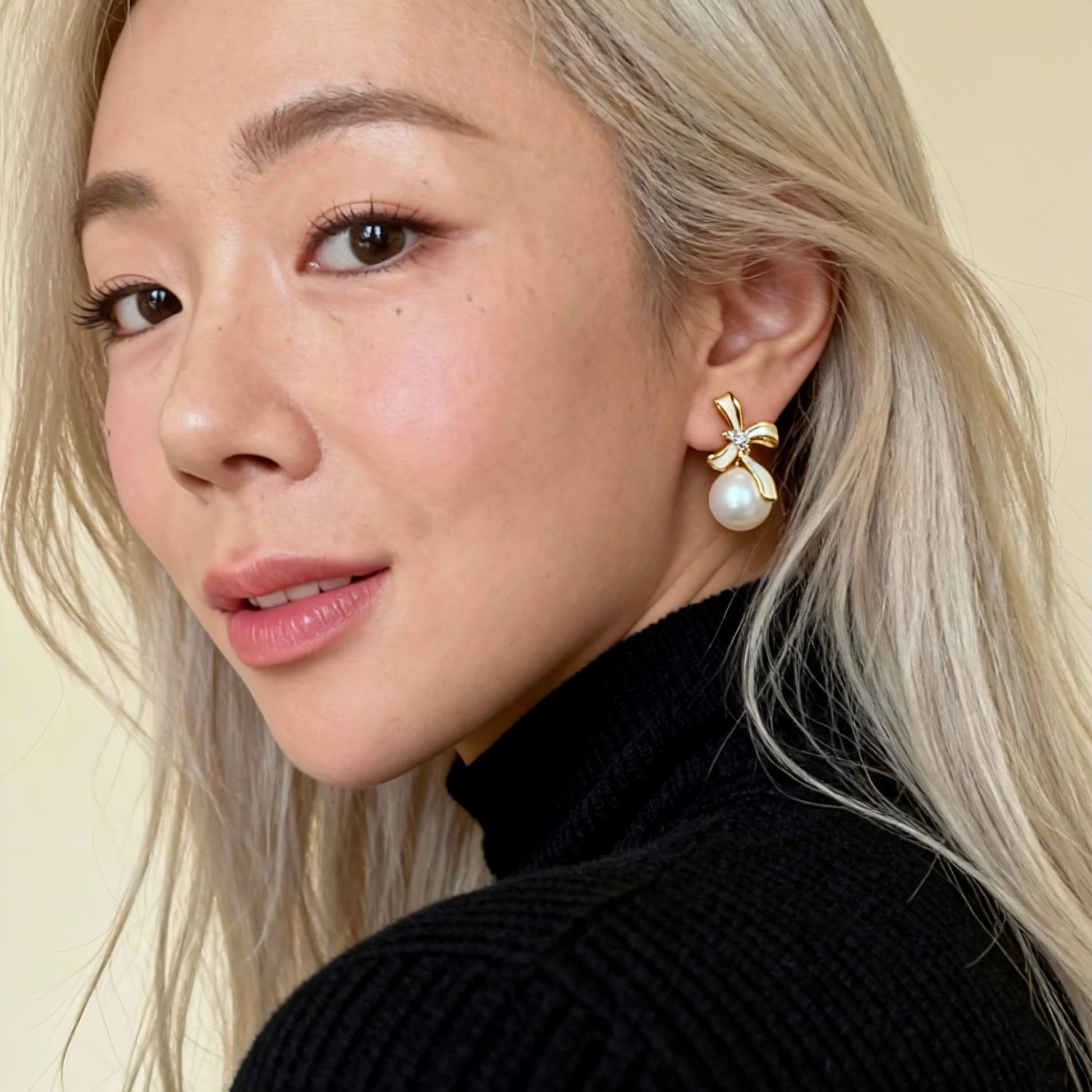 Featuring a glossy enamel bow and a luminous baroque pearl, these earrings add an effortlessly elegant touch to any outfit.