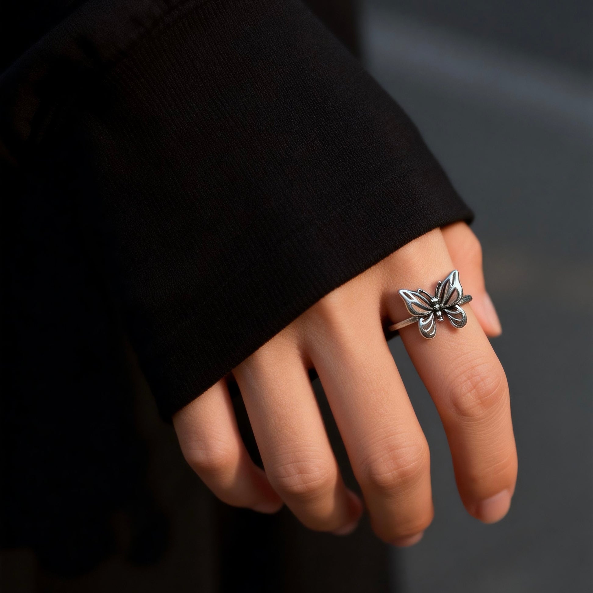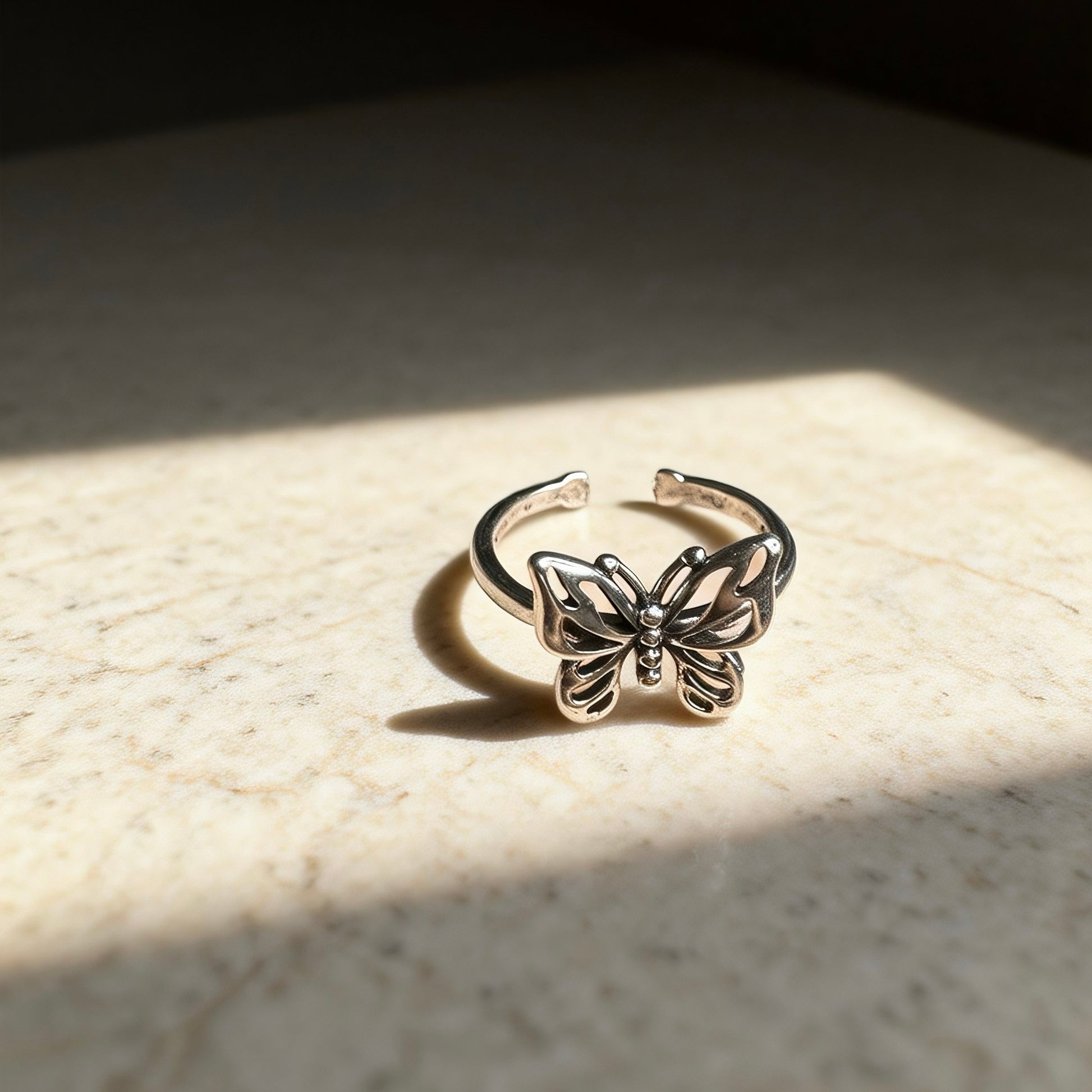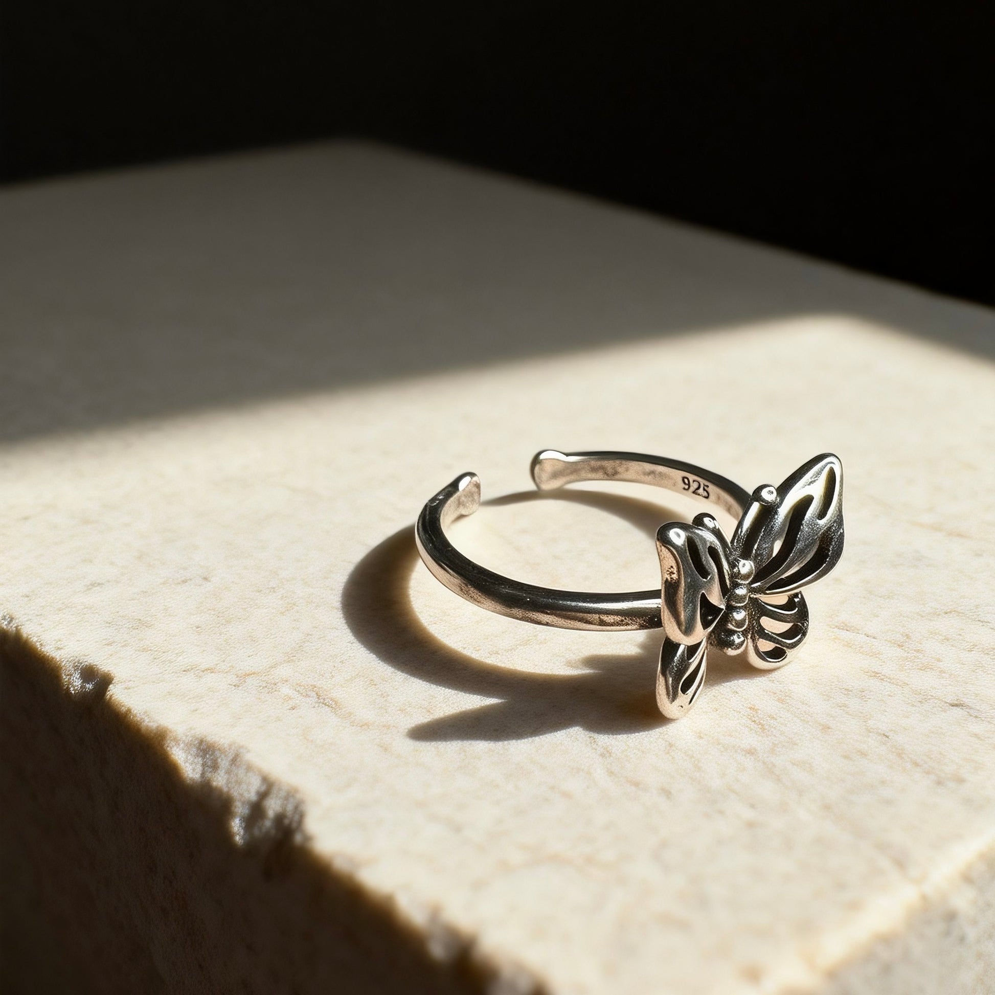 A delicate butterfly ring crafted from solid 925 sterling silver,