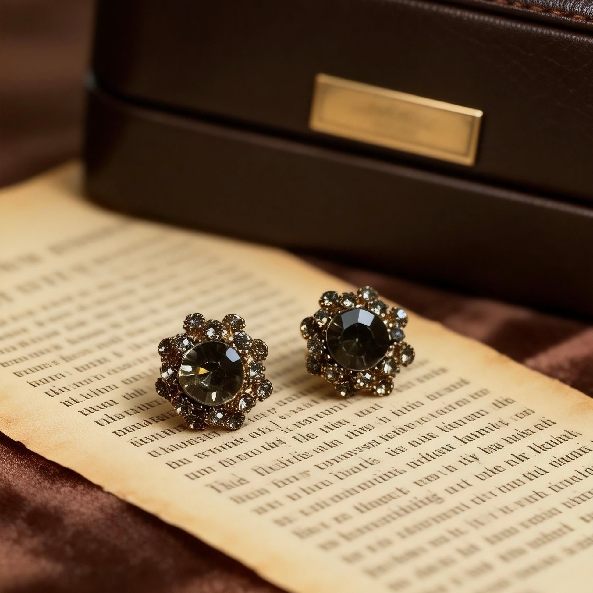 These vintage-inspired stud earrings feature a deep-toned faceted center stone surrounded by ultra-sparkling crystal accents. Designed to catch light from every angle, they deliver bold brilliance with timeless elegance.