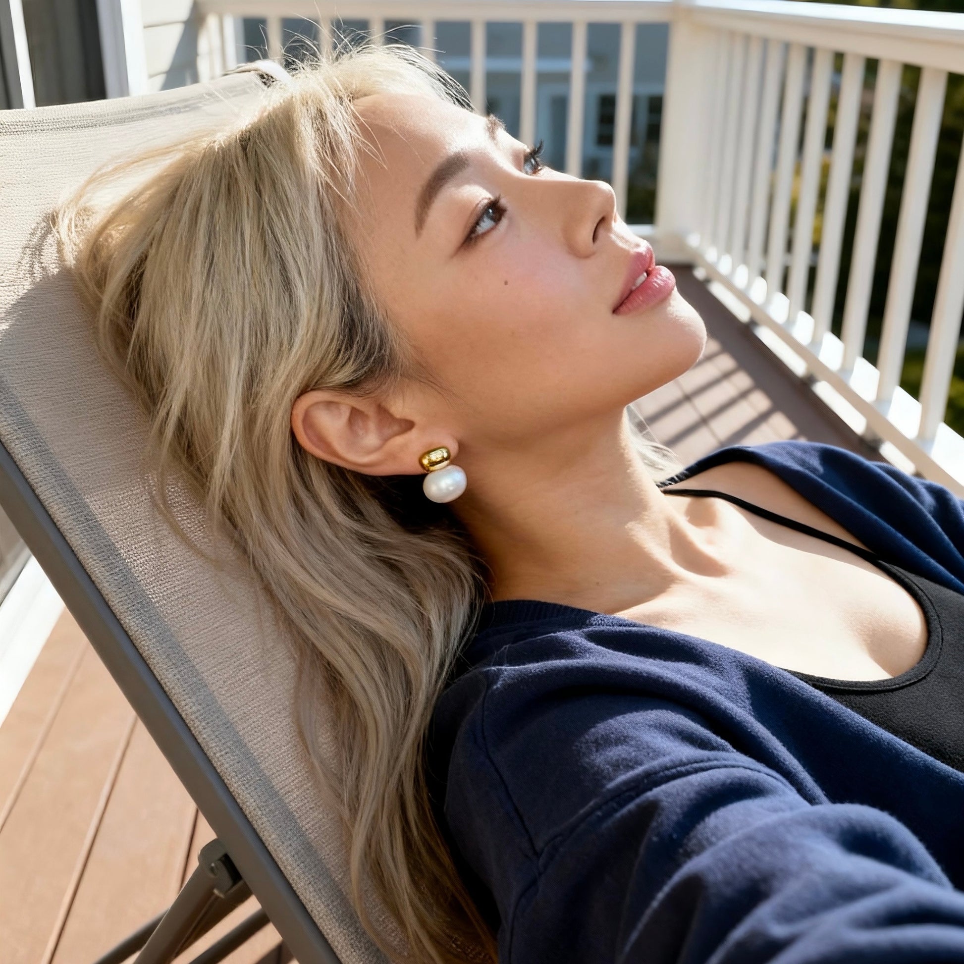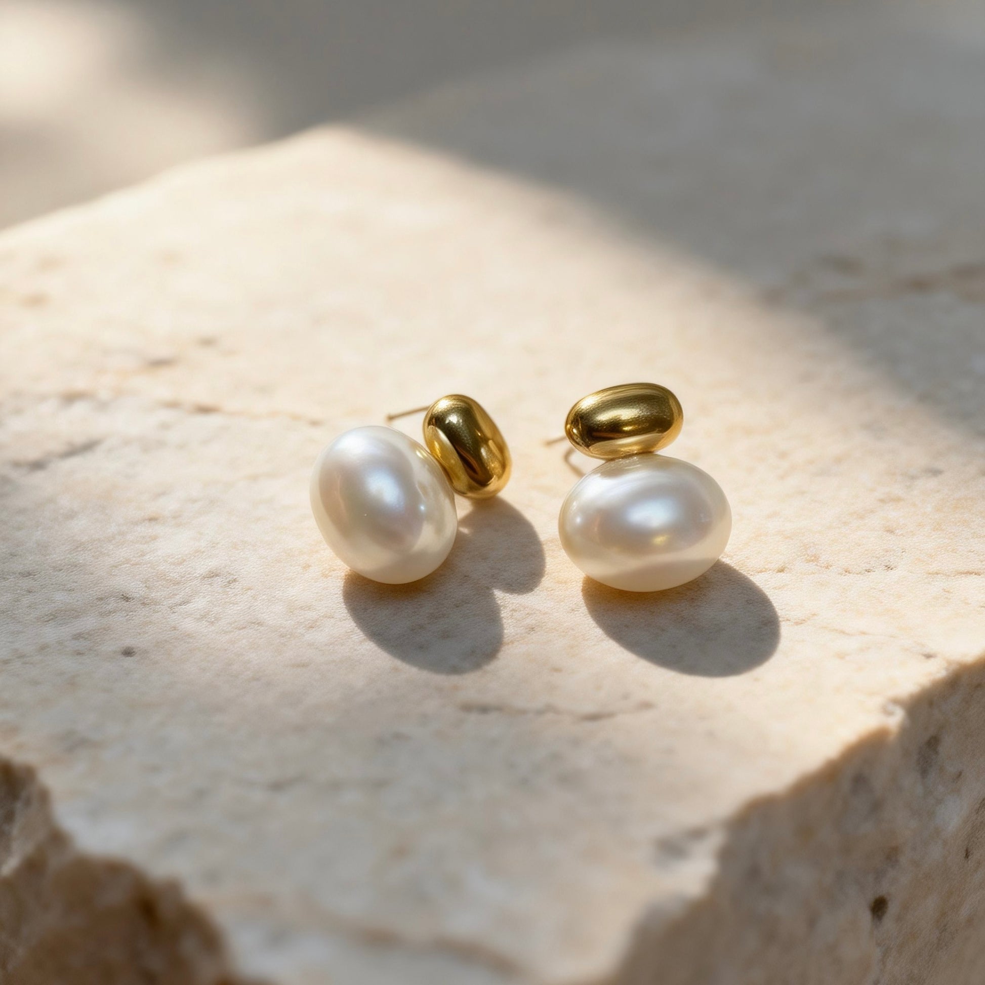 These gold pearl stud earrings pair a smooth organic gold form with a luminous pearl drop, creating a modern yet timeless silhouette. The clean structure adds quiet sophistication without overpowering your look.
