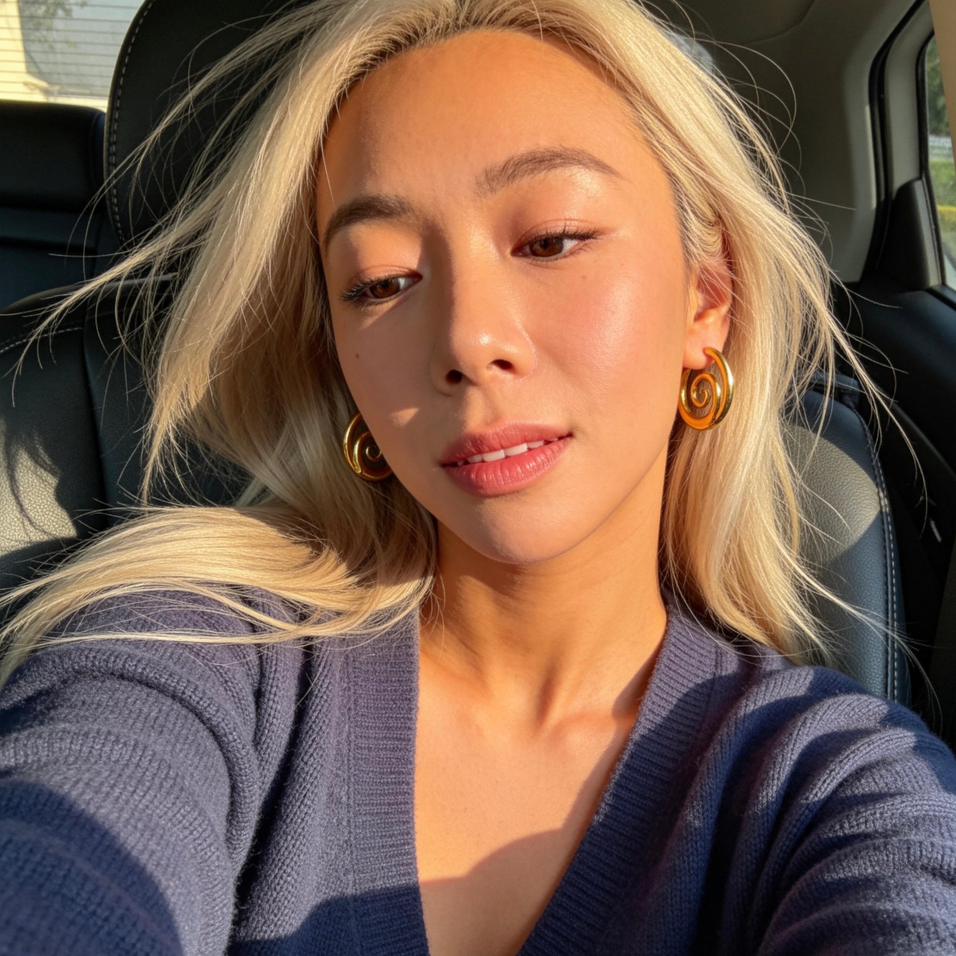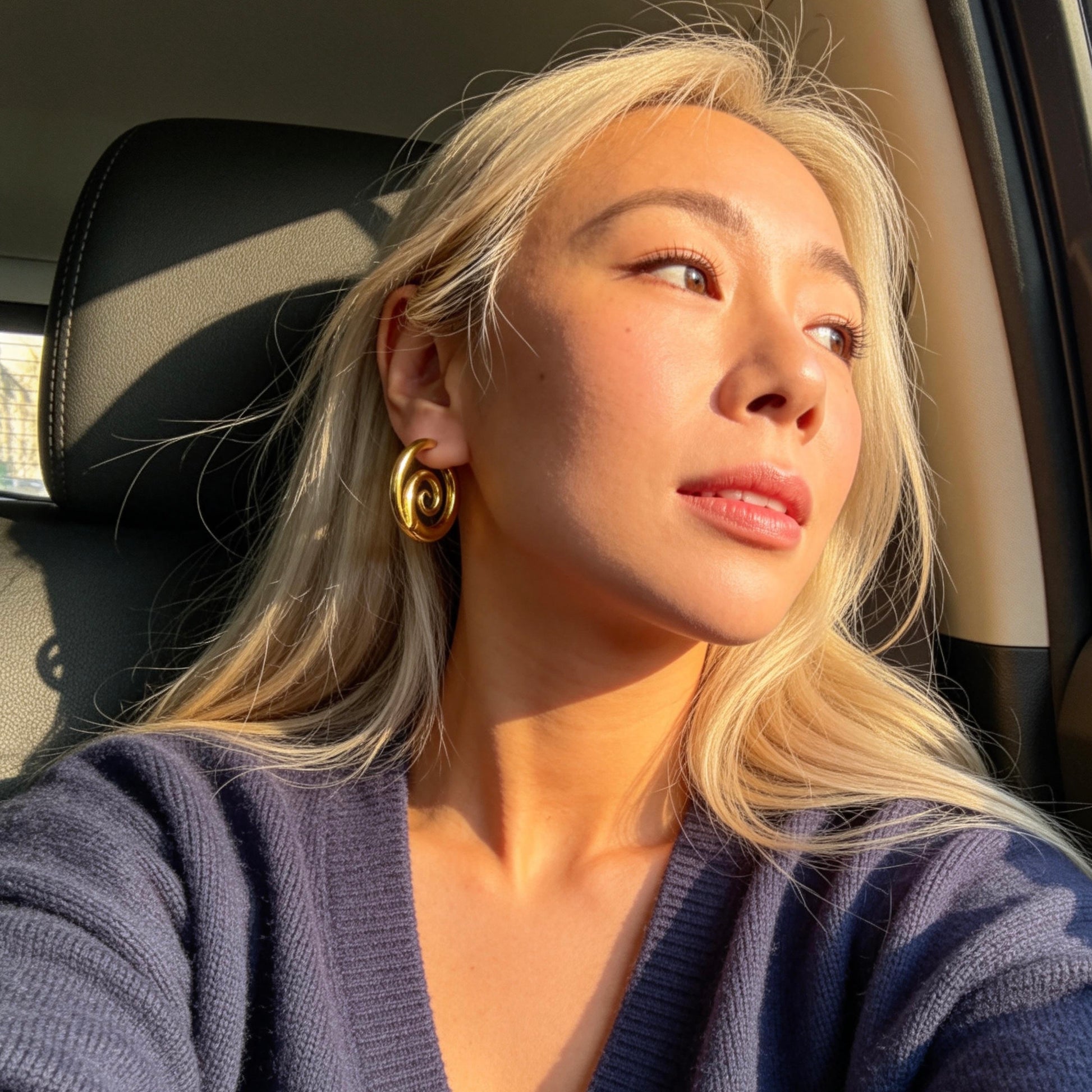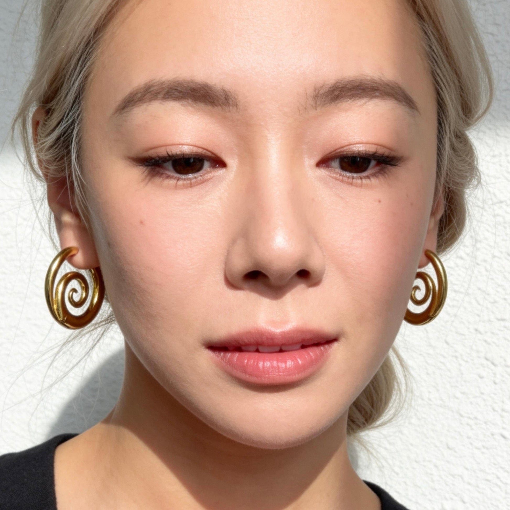 Vintage-inspired gold hoop earrings featuring a sculptural spiral swirl design. Elegant yet bold, perfect for adding a retro artistic touch to everyday outfits.
