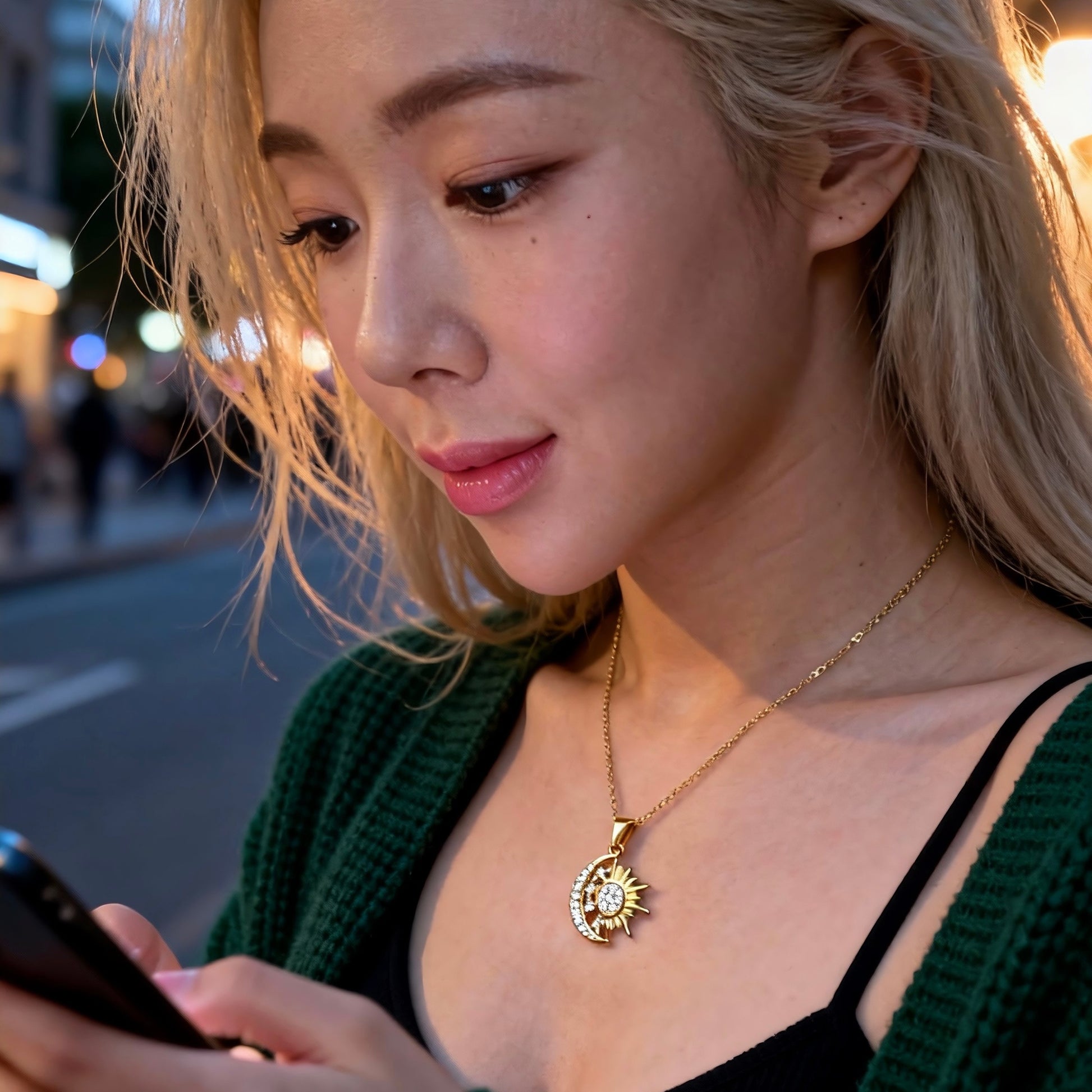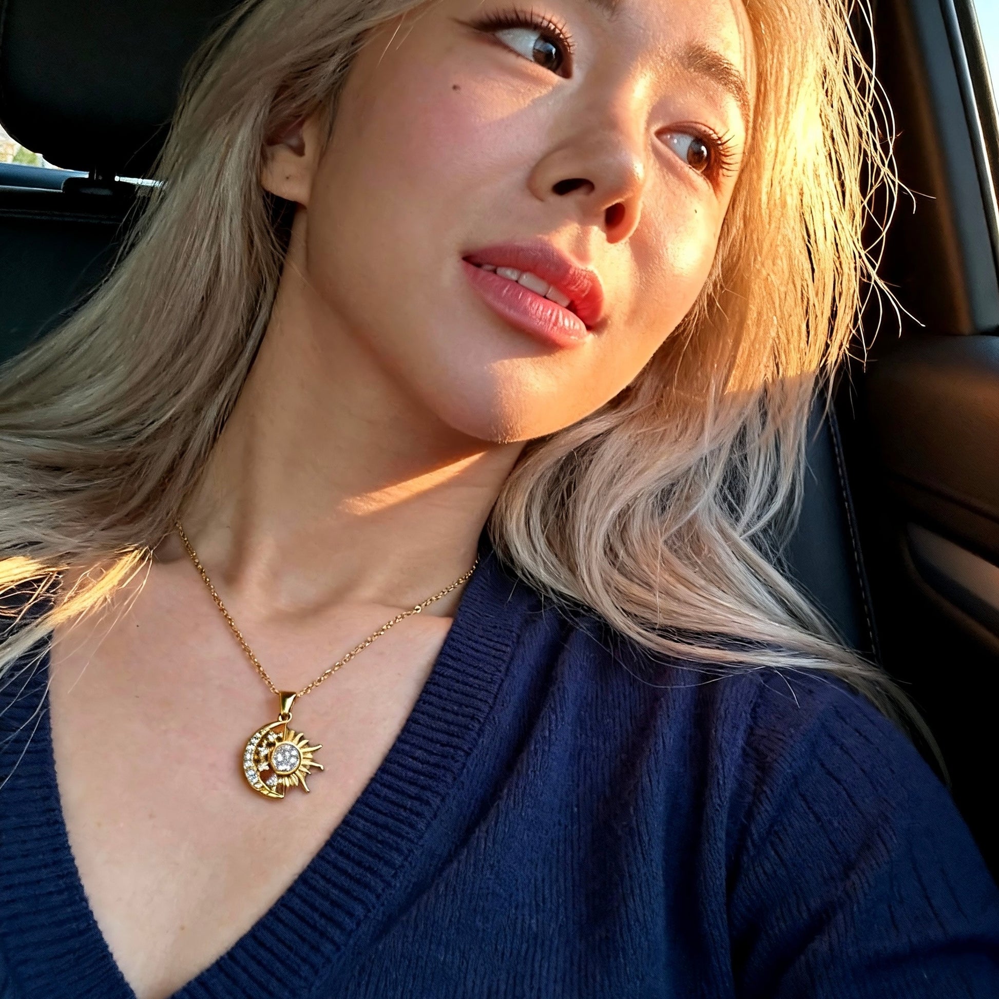 Sun & Moon Crystal Pendant Necklace