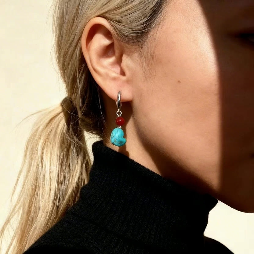 Featuring turquoise stone and red agate bead, these lightweight drop earrings add an effortless boho touch to everyday looks.