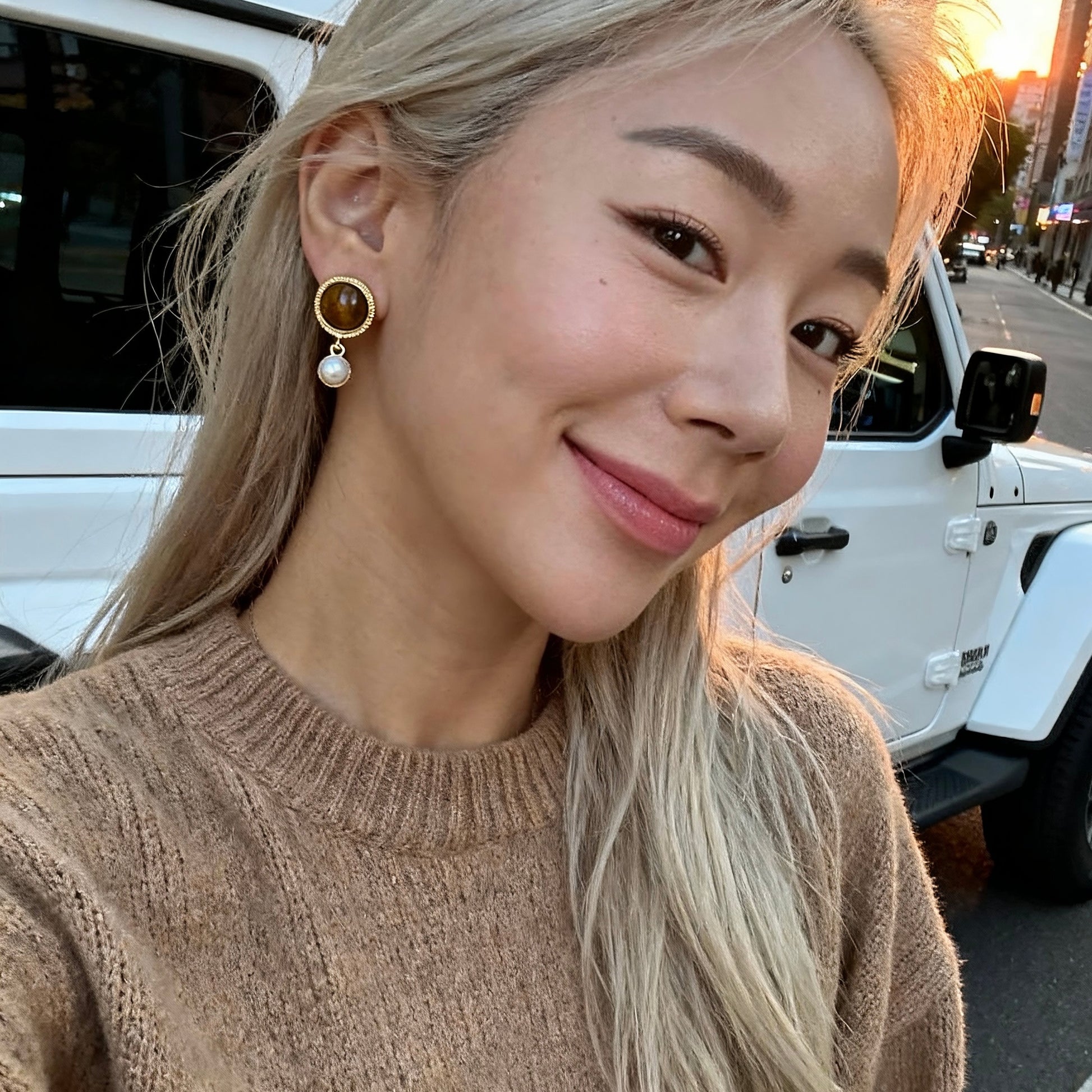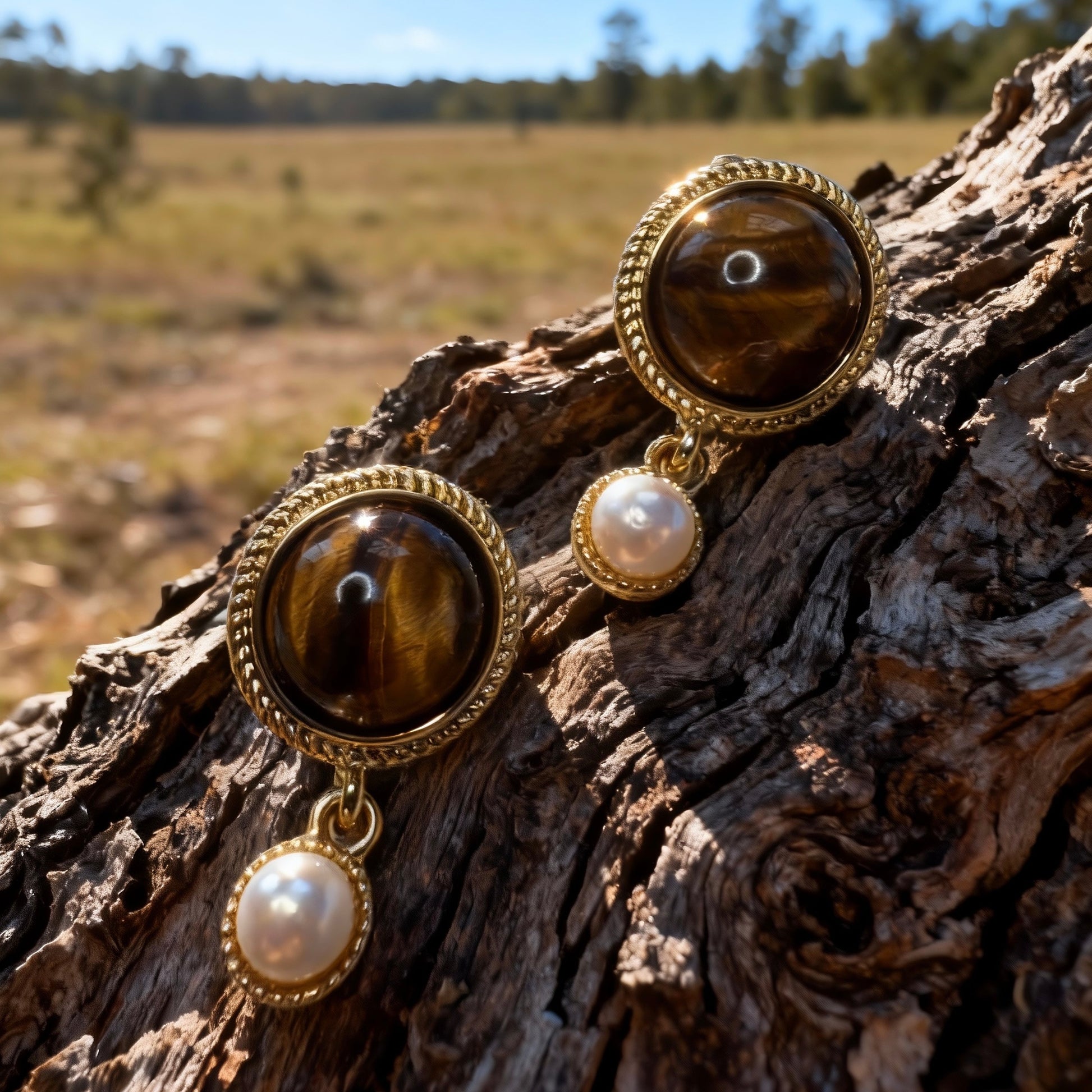 Elevate your look with these vintage-inspired earrings, featuring a rich tiger eye stud paired with an elegant pearl drop for a refined, timeless glow. The warm golden tones make them perfect for everyday styling, work outfits, or special occasions.