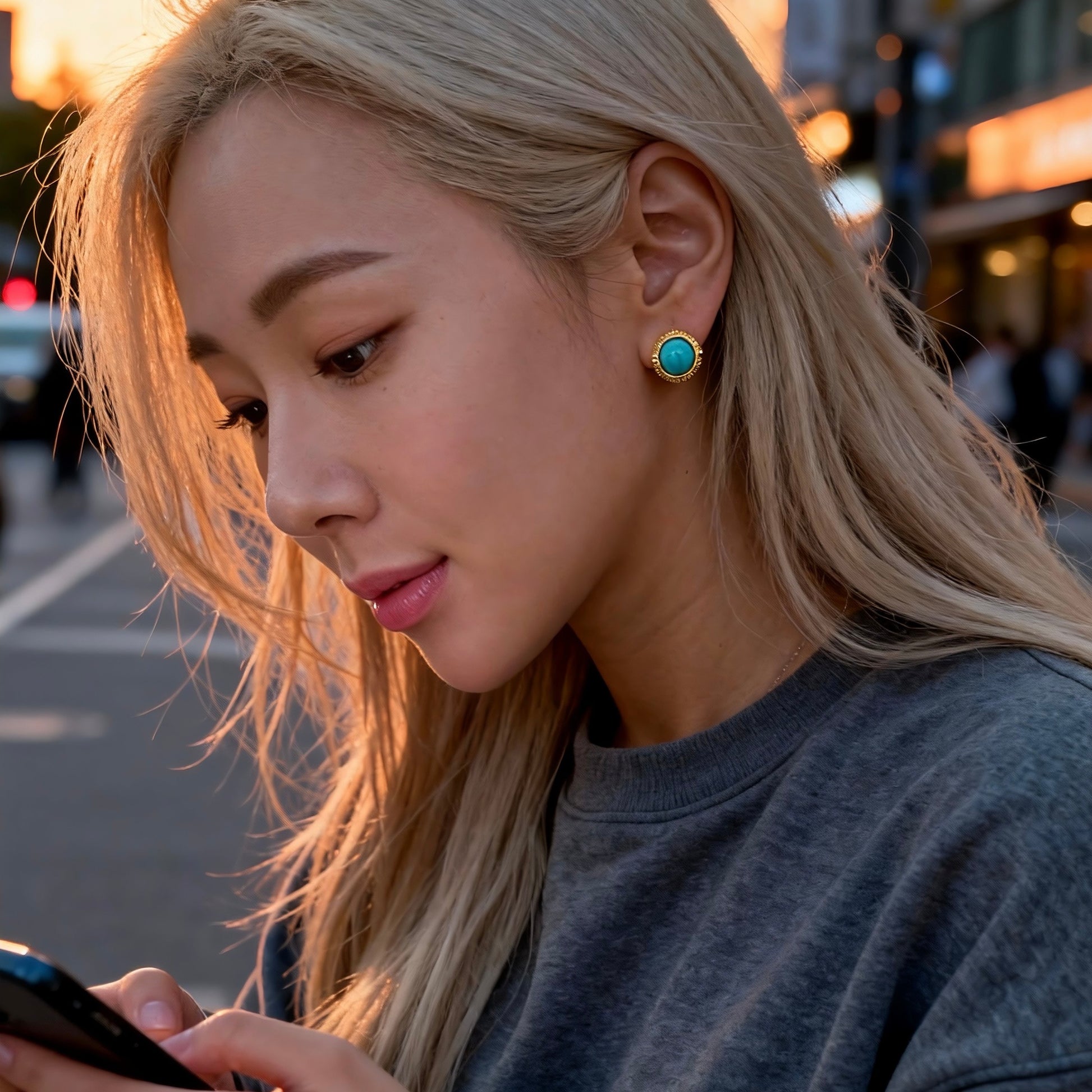 Bring a bold pop of color to your look with these vintage-inspired turquoise studs. The natural stone detail and antique gold frame create an effortlessly bohemian charm.