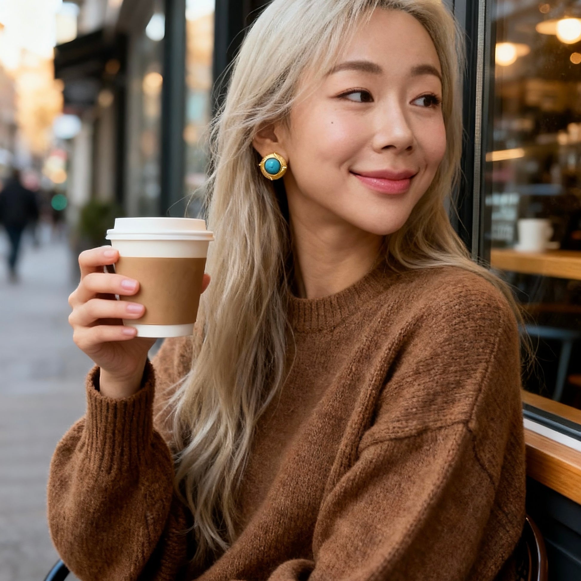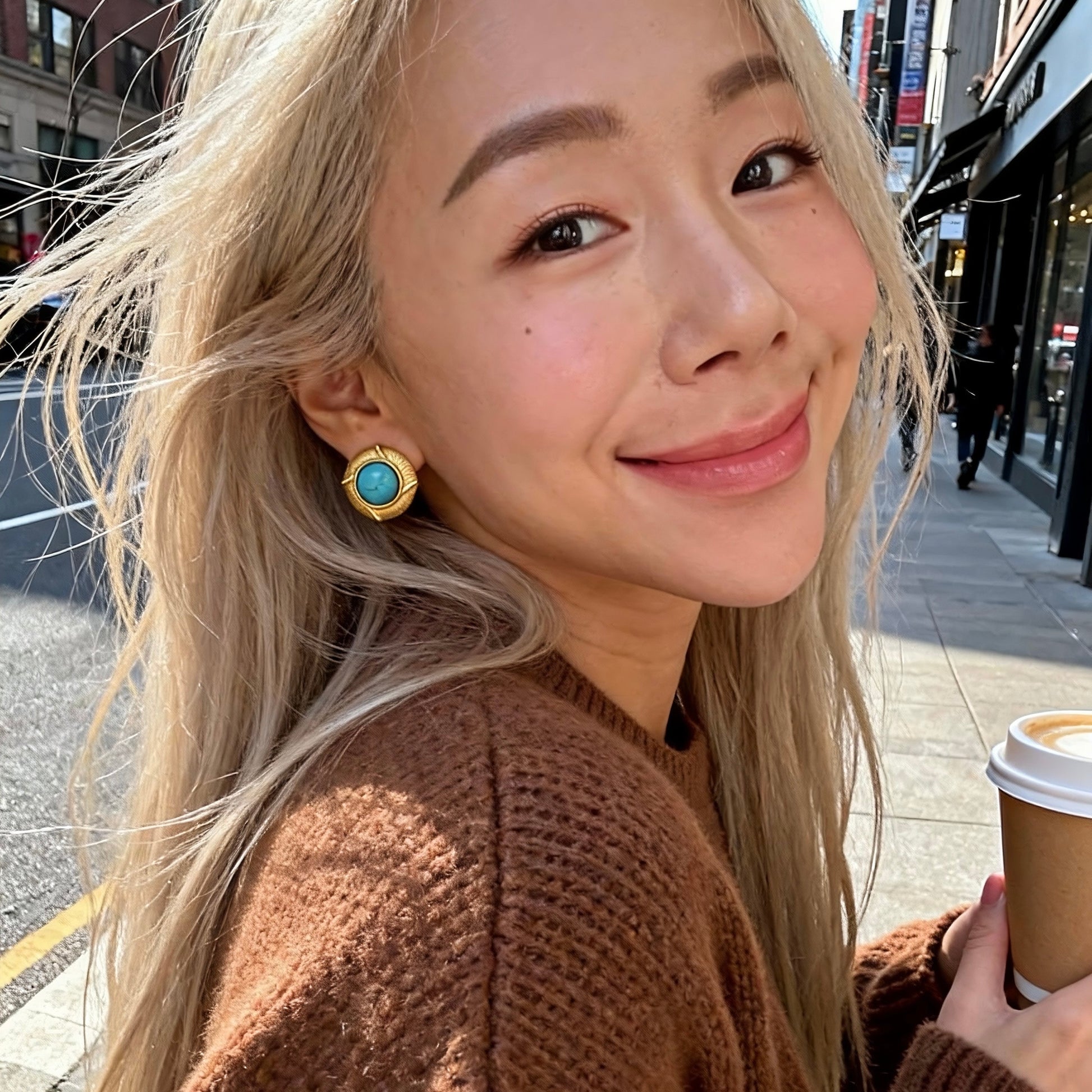 Add a touch of effortless boho charm to your look with these vintage-inspired turquoise studs. The bold turquoise stone is framed by a textured antique-gold setting, creating a striking piece that feels both timeless and earthy.