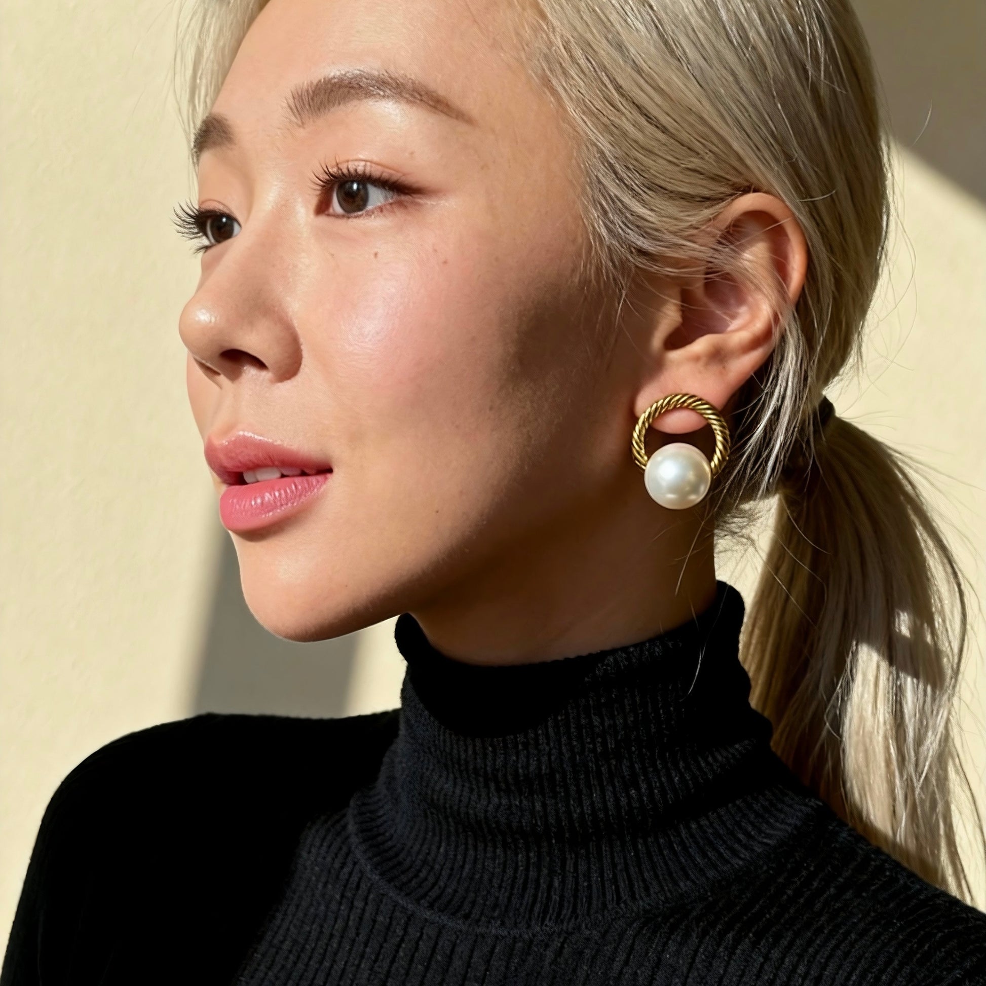 Featuring a luminous pearl set on a twisted vintage gold loop, these studs add effortless elegance to any look.